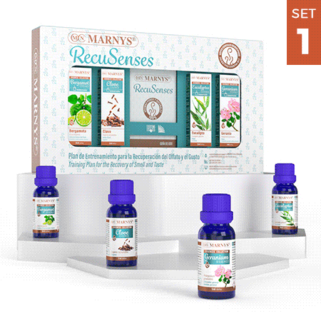 El plan de entrenamiento olfativo consiste en oler los diferentes aromas esenciales que componen los sets de RecuSenses.